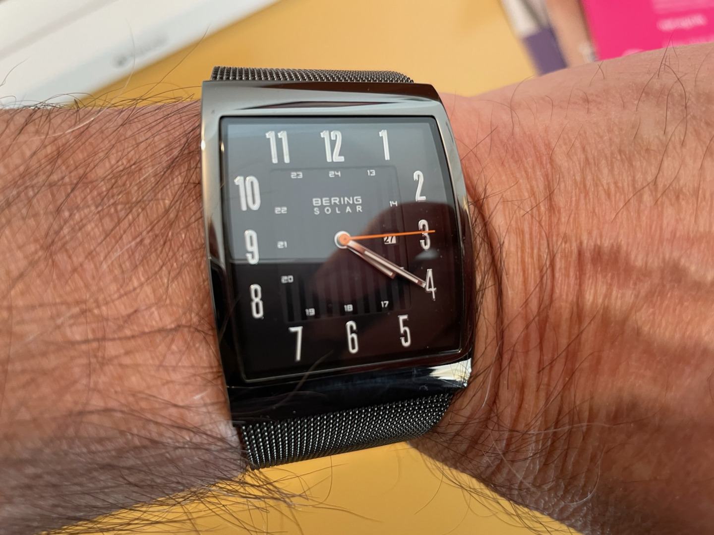 Here’s my “everyday” watch, which I’ve worn since July 14, 2010, or thereabouts. I tried to find an interesting background.